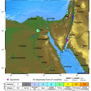 المساحة الجيولوجية هزة أرضية في خليج العقبة بقوة 3 4