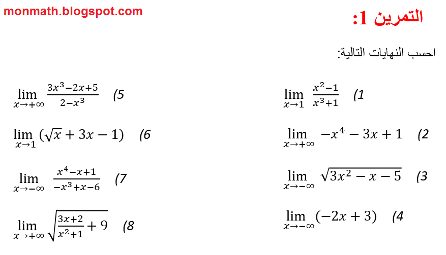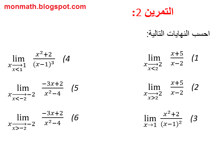 الرياضيات للثانوي التأهيلي تمرين 1 في نهاية الدوال ألاعتيادية