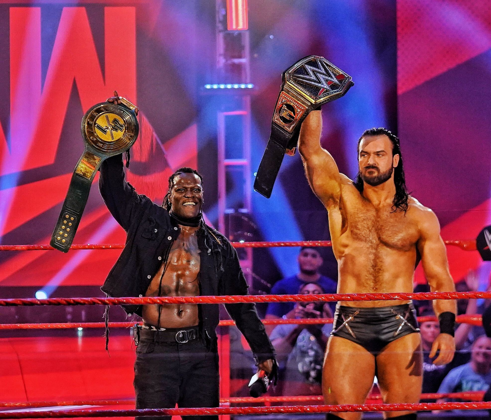 أخبار المصارعة يوميا A Twitter ليتمكن درو ماكنتاير من توجيه ركلة كلايمور في وجه إم في بي ثم نفذ آر تروث قفزة قوية من أعلى الحبال وثبت إم في بي لحسم الفوز