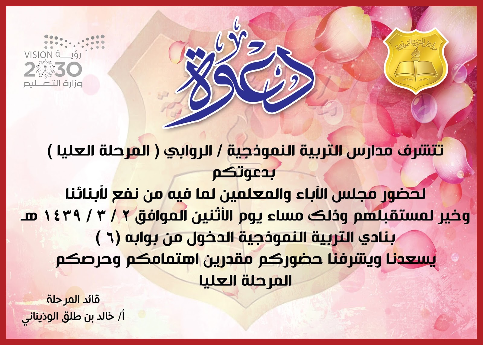 نموذج دعوة لحضور اجتماع الجمعية العمومية لأولياء الأمور مجلس الآباء