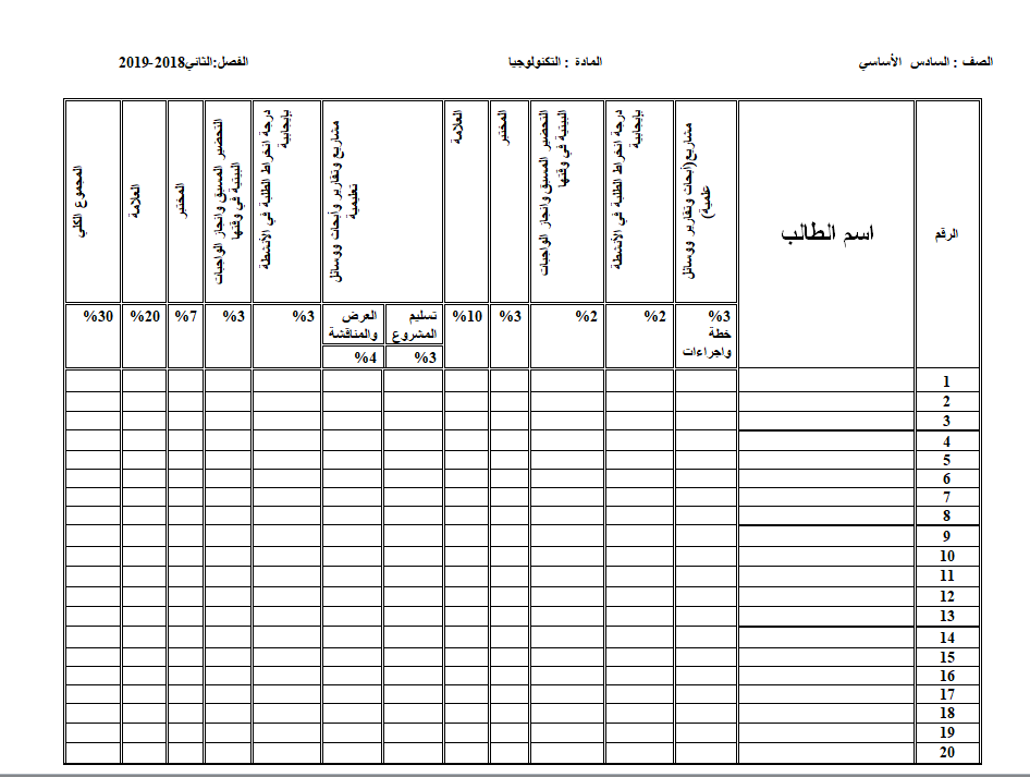 كشف متابعة وتقويم الطلاب والطالبات يمكن تعديله بلبل انقلش