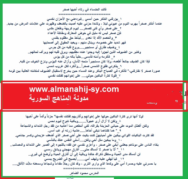نص رثاء أخ للخنساء للصف العاشر المحيط في اللغة العربية Facebook