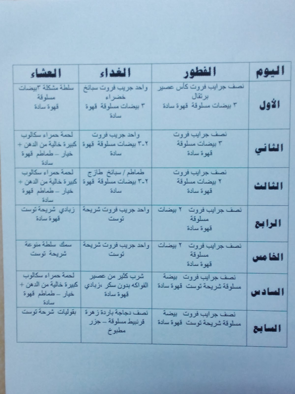 جدول رجيم 7 أيام لخسارة 7 كيلو أطيب طبخة